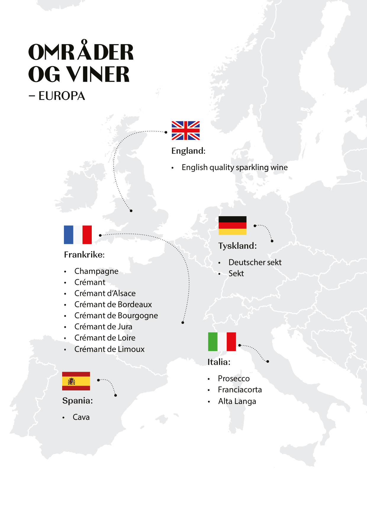 England er den nye gutten i klassen. Kjølig klima og et kalkrikt jordsmonn som minner om det i Champagne legger til rette for viner som kan konkurrere med champagne i stil og kvalitet. Chardonnay, pinot noir og pinot meunier er mest brukt. Sussex og Kent i den sørøstlige delen av England regnes som de beste områdene. Vinene er tørre og svært friske, og lages med tradisjonell metode.